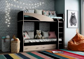 - Нижнее спальное место дополнено двумя выдвижными ящиками на роликовых направляющих