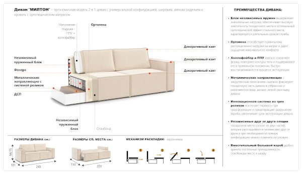 Диван Милтон (Империал) продается в интернет-магазине mebel-online-yakutsk.ru по цене 60 770 руб. Есть доставка по Якутску и Республике Саха. Возможность подъема на этаж и сборки уточняйте у менеджера по телефону 8(800)505-27-11.